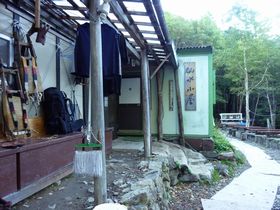 7:05、仙水小屋に到着。歩いて30分ぐらいですが、ここが最後の水場のため、ここで水を汲みます。テント場もあるようですが、10張できるかな?