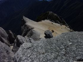 10:05、甲斐駒ケ岳山頂に到着。狭い山頂は人がたくさんです。360度見渡せる大パノラマ。富士山はもちろん、北岳、遠くには槍ヶ岳も!昨日と違って、日差しがあるので暖かいです。