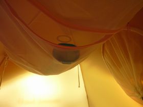 テントの天井部分4か所に、ひもが付いています。