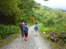 20分ほどで猿倉荘到着。猿倉にも無料駐車場があるとのことでしたが、既にバスが上がってくる時間は満車でした。ここで登山届を提出。ハイキング保険も、ここで入れます。