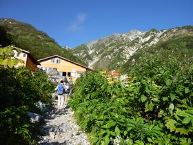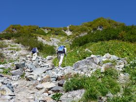 夏山の風物詩のひとつ大雪渓、可憐な花の大群落。大パノラマの山旅を楽しめる。