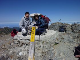 白馬山荘を出て、15分で白馬山頂上(2,932m)へ。360度回りが見渡せます。なんと日本海も見えました!