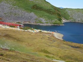 おぉ、今夜のお宿がある、白馬大池が見えて来ました!この辺りもお花畑らしいです。