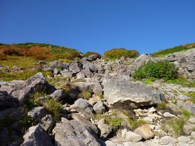 ゴロゴロ岩の急傾斜で辛かった・・・どうやらこの辺りはお花畑だそうですが、季節外れのため、お花に遭遇することはありませんでした・・・