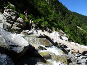 通常、穂高岳山荘に行くときは、涸沢カール経由で行きます。今回の白出沢出合から行くコースは最短で登れるけれど、情報が少ない・・・穂高岳山荘のHPを見ると、ここ最近の長雨で重太郎橋が流されて、現在修復中とのこと。