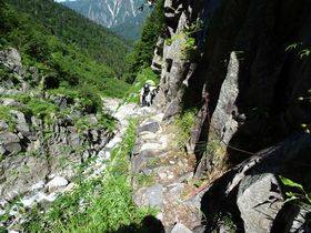 沢に沿って、崖を登ります。