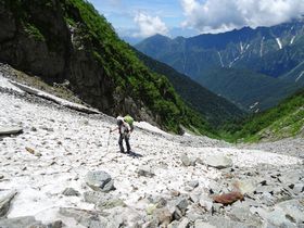 雪渓が見えてきました。