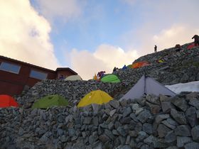 段々になっている穂高山荘のテン場
