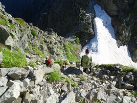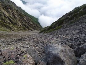 雪渓は問題ないとのこと。道が整備されていないため、歩き辛いらしい。今までみたいに岩稜帯を行く訳ではないので、もう進むしかない!!