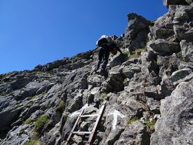 南岳に上がる最後のハシゴ