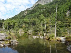 左が明神一之池、右が明神二之池。300円の拝観料と書いてあり「え?!」と思いましたが、払う価値ありです。 余談ですが、横の嘉門次小屋のアユの塩焼きは絶品らしいです。
