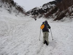 夏山は本谷橋を渡って山道を上がって行きますが、今の時期は本谷橋を渡らずに、沢の上を歩いて行きます。