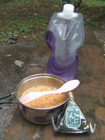 横尾で昼食。チキンラーメンとおにぎり。今回はテントを私が持つ代わりに、もりぞうさんが食糧を持ってくれました。もりぞうさんの荷物かこれからどんどん減っていくのね〜 羨ましい〜