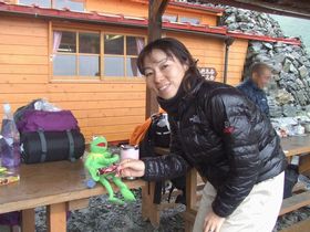 やっと明るくなり、雨の音も小さくなり・・・ 今がチャンス!と荷物をまとめました。テントが水で重い・・・ 他のテントは私たちのような思いをしていないのか、誰も動く気配なし。5時半ですよ〜 普段山の生活はみなさん早いはずなのに・・・ よっぽど寝心地がいいのか、それとも雨と風がやっと止んで、みなさんこれからゆっくり眠ろうとしているのか・・・