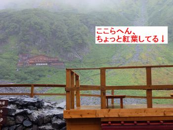 う〜ん、やっぱり紅葉は早かったようです・・・今年の夏は本当に暑かったもんね・・・予想はしていたけれど・・・ それより、霧がすごいです。カールの上はガスっていて、よく見えません。このベンチに座って、コーヒー飲むのが夢だったのにぃ〜