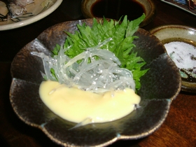 高知の郷土料理が食べられる「司」に行きました。このお魚は「どろめ」といいます。辞書で調べたらハゼ科の海水魚で「だぼはぜ」とも言うらしい。東京ではあまりお目にかからないので頼んでみました。上にかかっているのは酢味噌です。