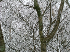 そして、白いものの正体がわかりました。樹氷でした!おもしろいことに北西の斜面の木だけに樹氷ができていました。樹氷が風に揺られ、落ちてきたのです。斜面の方角による少しの気温差で、樹氷ができたりできなかったり・・・自然って不思議です。