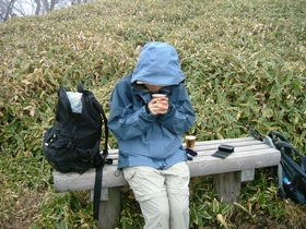 何組か登山客がいましたが、みなさん震えていました。晴れていたら富士山、谷川連峰、南アルプス、そうそうたる山々が見えたのに・・・