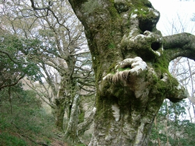 わざわざ「ブナ巨木あり」の道しるべがありました。ここを管理している人はよっぽど見て欲しいのでしょう。何歳ぐらいの木なのかな?顔に見えない?
