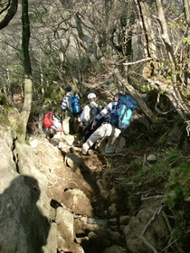 駐車場はいい感じだったけど、登山道は泥と大きな石が入り混じり、歩きにくい・・・ちょっと登ると、ちょっと下る・・・ せっかく登ったのに、下るなんてもったいない(泣)