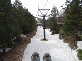 吾妻山登山道入口までは、ロープウェイ1本リフト3本乗り継ぎます。往復3000円也。