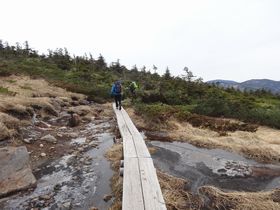カモシカ展望台を抜けた後、木道が出てきました。
