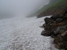 5月半ばに山友のみどりさんが行ったときは夏道がなかったので、この雪渓を上がって行ったようですが、この時期は100メートルぐらいを対岸に横断するだけで済みました。