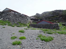 御室小屋に下りると、先ほどの某テレビ局スタッフと女性ガイドさんのグループが。彼らは天気が悪いので、今日はここで引き返して、来週月曜にまた登るそうです。お仕事登山でも、羨ましいな〜。
