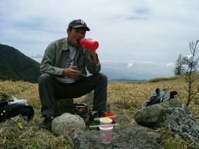 11:54 ランチはカップラーメンとお菓子と水。登山の基本?