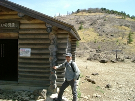 10:00 非難小屋に到着。軽い決めポーズ。