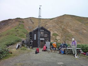 頂上まであと20分のところにある、駒の小屋に到着です。無人の山小屋で立派な建物なので中が気になりましたが、雪対策のため入口がはしごを登った2階にあるため、見に行くのをあきらめました・・・ トイレはその中にあったかも・・・?