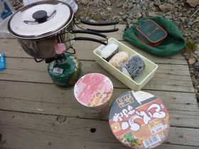 今日の昼食もおにぎりとカップラーメンです。なんと百名山30座目にして初めて出発前におにぎり握りました〜 お金ないので、こういうところで節約です。