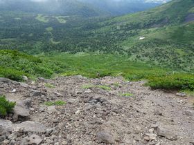 途中、地図にない水場(雪渓)で、トムラウシから縦走してきた2人組とすれ違う。水曜から山に入ったとのこと。今日は土曜だから、4日目?!