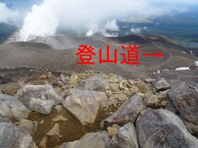 火山灰の登山道