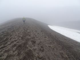 そのときは曇り空で暗くて、月面みたいな火山灰の登山道が何だか不気味でした。