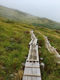 こんな天気でも、多くの人が山頂を目指していました。Facebookの山友さんが1日前に月山を登っていて、その写真はとてもきれいで、白装束の人も登っていたとの情報。。今年の夏シーズン、後半はお天気が悪く・・・昨日の早池峰は天気がまぁまぁ良かったけれど、登山途中に山頂を見ることができず・・・