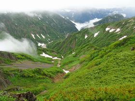 五竜岳を出た時は見晴らしを期待していませんでしたが、5分に1回ぐらい立山方面の見晴らしが。お天気悪かったけれど、決行して良かった!