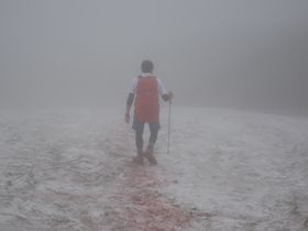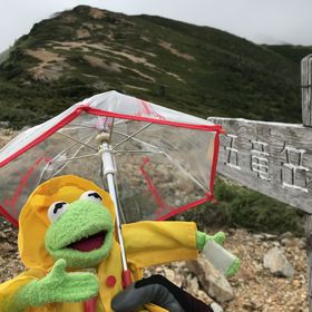 こないだの金峰山でもそうだったけれど、カーミットにレインウェアを着せると雨が降らない?!晴れはしないけれど・・・