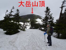 スキーヤーは仙人岱避難小屋方面へ向かっていましたが、途中から左手に大岳が見えたので、我々は夏道まで直登します。