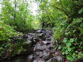 登山慣れしていない人のことも想定して、整備されているのでしょうか。とても歩きやすい登山道です。砂防新道の方が急ではないというので、砂防新道から登ります。 |