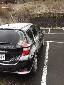 フロントガラスに雪がうっすら