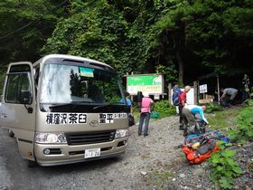 朝一バスは7:30を待つことなく、4台発車していきました・・・「う、あれが戻って来ないと乗れないのか・・・」と思っていたところ、ある登山客が井川観光協会の運転手に「12:00の予約なんだけど、乗せてもらえませんか?」と言っているではないですか!