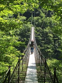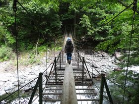 吊り橋を何個も何度も渡ります。