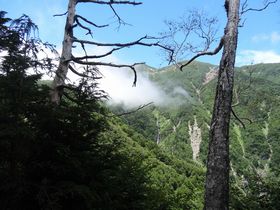 造林小屋跡〜乗越の間。聖岳が見えました。