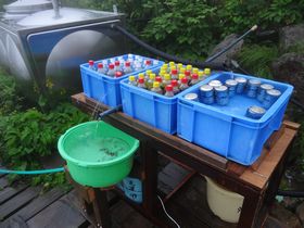 そばに渓流が流れていて、ここは登山客ではなく釣り客が宿泊していました。釣りのことはよくわからないけれど、エボさんが釣り客に聞いたところ、昨日結構大物が釣れたらしい。