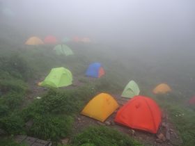 天気が良かったら、聖まで今日のうちに登ってしまいたかったけれどあいにくのお天気。ガスは晴れないので、明日行くことに。