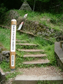 リフト乗り場のすぐ左横に登山口があります。道標は立派です。