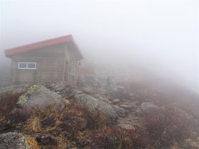 鳳鳴避難小屋は霧の中