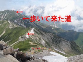 ロープ雪渓を登り終えると、上から来た人に「あとは楽な登りです」と言われ、一安心。