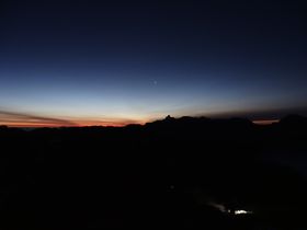 5:10、朝日が当たる笠ヶ岳、もうこれだけ離れました。